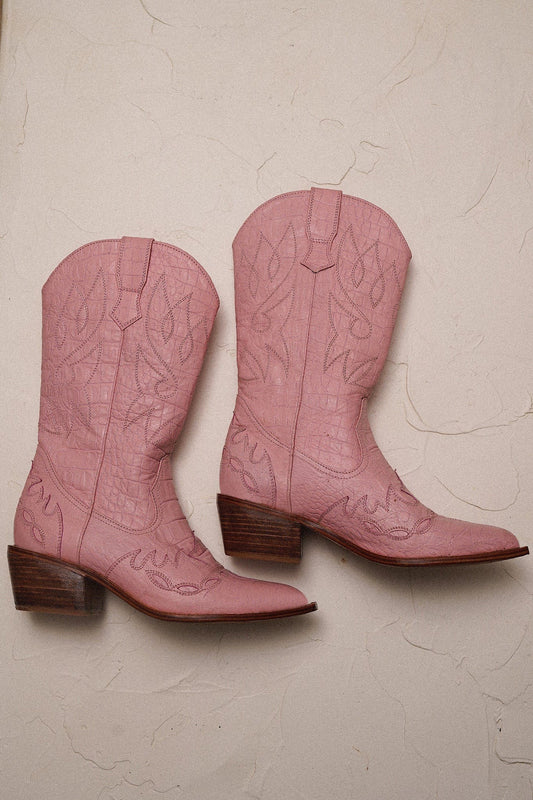 Handmade by our Balinese artisans from 100% high quality leather. The Zephyr Boot is a statement piece. Inspired by the west with its dreamy pastel pink hues and detailed stitching, these boots are a work of art and add a glow to any outfit.